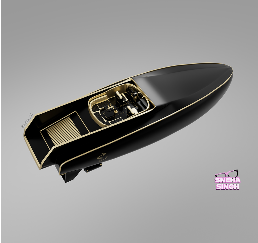 Modeled in Maya with precision, this sleek boat features smooth, aerodynamic curves and refined details. Textured in Substance Painter, its glossy black finish and gold accents shine with PBR realism, enhancing depth and luxury. A perfect fusion of artistry and technique.